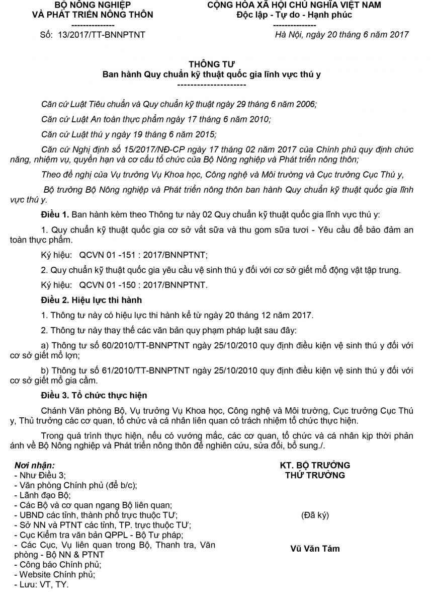 QUY CHUẨN KỸ THUẬT QUỐC GIA YÊU CẦU VỆ SINH THÚ Y ĐỐI VỚI CƠ SỞ GIẾT MỔ ĐỘNG VẬT TẬP TRUNG 04-04-2018 02:59:29 PM - 3227